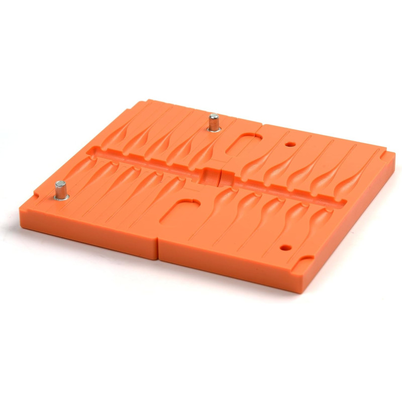 MATERIAL: Enginered stone. Stone powded mixed with polymers to create a low-porous and durable material, which is a perfect fit for soft plastic lure molds.